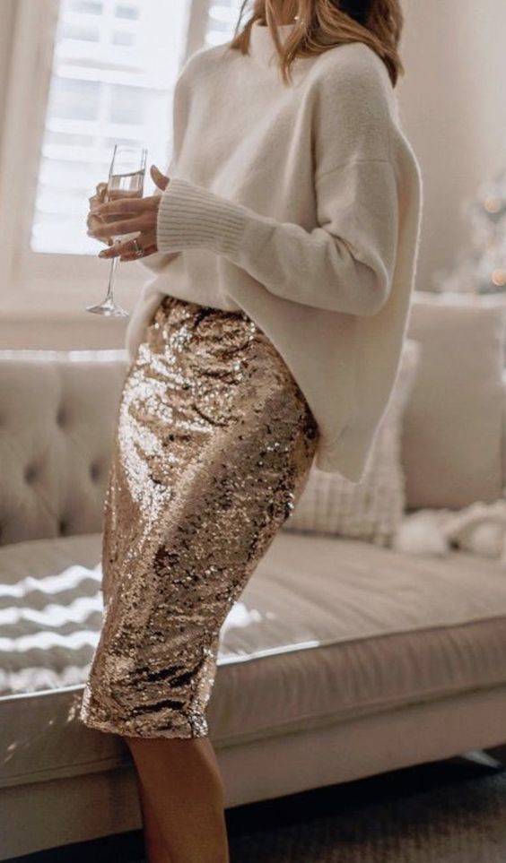 Otros de los mejores outfits con faldas midi para invierno que podrás conseguir para vestir en estas fechas, son estas siguientes opciones de faldas con brillos para invierno. AsĂ que aprovecha, estos dos meses que nos quedan aun de frĂo para que consigas un look glamuroso y estiloso en fundamental. Las faldas con brillos, no solamente te harán ver de lo más elegante.