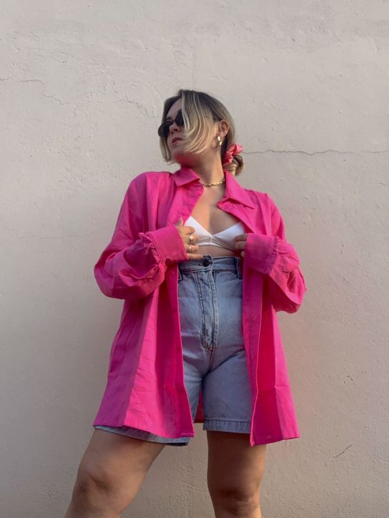 Pero ojo, va a influir muchÃsimo como los vas a combinar en este look por ejemplo vemos una propuesta de lo más moderna, que consiste en usar un temporary de mezclilla de tiro alto. Combinada con un excessive blanco y encima una sobre camisa rosa que es de las opciones más modernas del momento. Te verás fashionable y femenina al mismo tiempo.