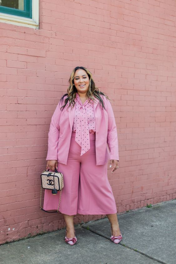 Finalizamos este completo tema de los mejores outfits con rosa para gorditas, con unas sugerencias de atuendos semi formales con rosa para gorditas. Este estilo semi formal se puede conseguir con la combinación de prendas tanto casuales como con prendas formales. Son el equilibrio perfecto de estos dos estilos.