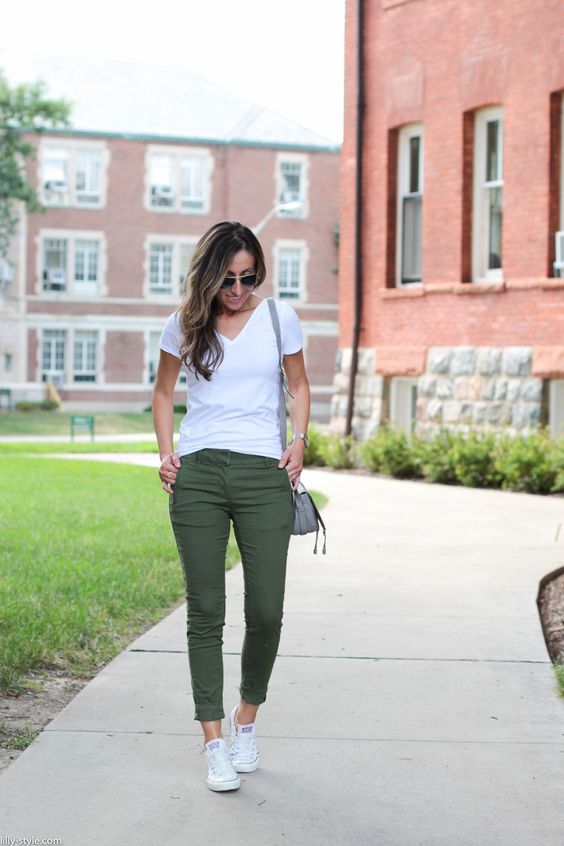 Siguiendo con todos estos outfits con pantalón verde militar, te propongo las siguientes ideas de seems to be like básicos con pantalón verde y blusas blancas. Decidimos llamar a estos como básicos por que son de esas prendas que siempre vamos a tener en nuestro closet. Sin importar cual sea nuestro estilo siempre nos hará ver bien una blusa blanca. Aunque no sea un pantalón verde militar el que usemos.