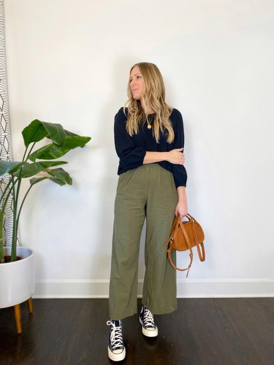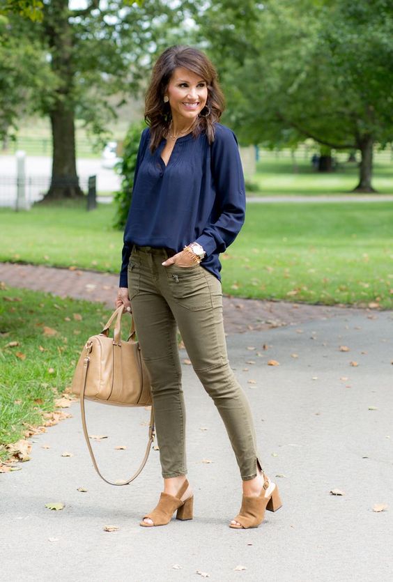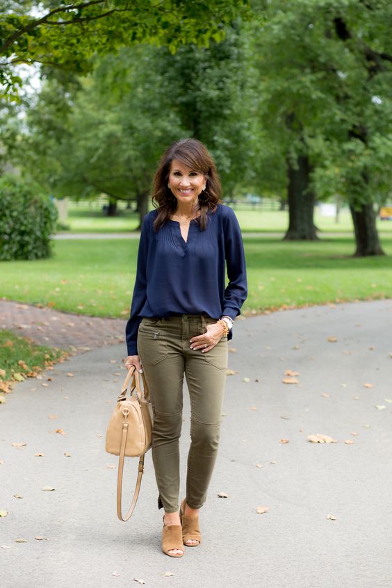 A continuación vemos algunos de los mejores outfits para mujeres maduras con pantalón verde militar que podrás utilizar si quieres usar este shade de pantalón. La combinación estrella como podrás ver en estos ejemplos es usando una blusa de seda en shade azul marino, con un pantalón verde, en cuanto a zapatos te propongo que makes use of en shade cafe, como un camel o bien shade piel. Los accesorios van del mismo shade.