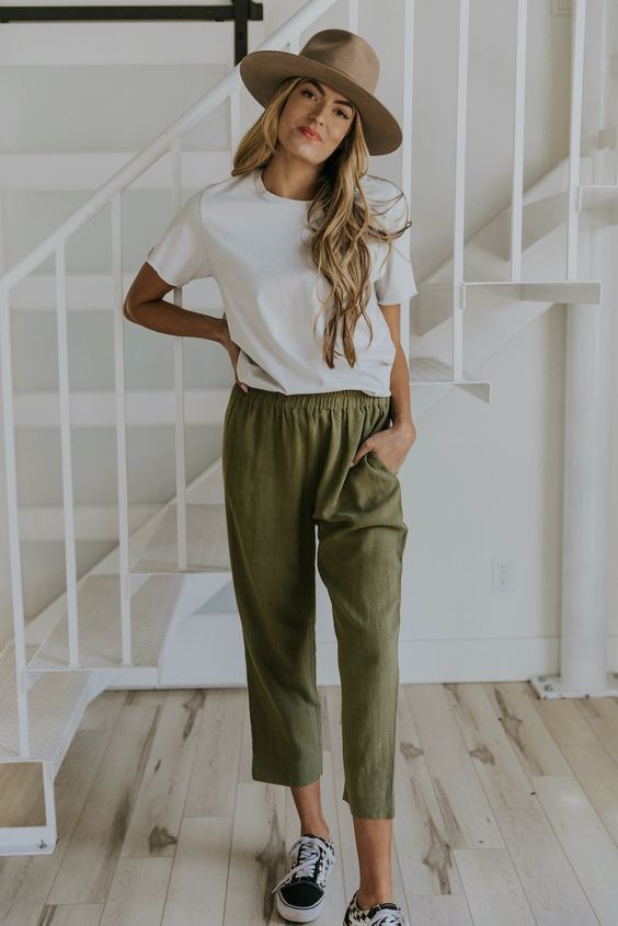 Y para finalizar con estos outfits con pantalón verde militar, la recomendación en esta categorÃa es la siguiente, combina pantalón verde militar con tops básicos. Los tops básicos seguramente los tienes perfectamente ubicados tanto por shade como por estilos que son las caracterÃsticas que mas los definen.