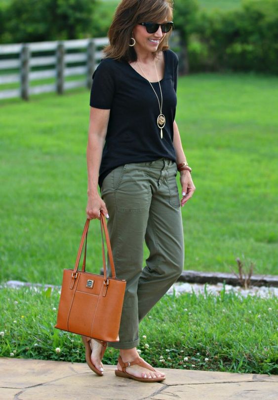 Outfits para mujeres maduras con pantalón verde militar