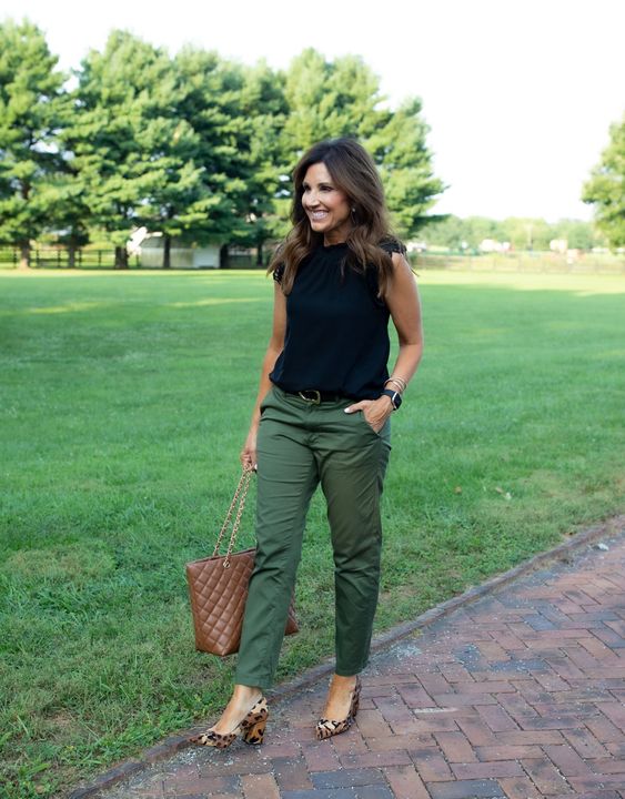 Casi para finalizar con estos outfits con pantalón verde militar, me gustarÃa que le des una oportunidad a los siguientes outfits para mujeres maduras con pantalón verde militar. Por que asà como los miras a estos outfits los pueden usar mujeres de todas las edades. Ya sean mujeres jóvenes o mujeres mayores de 40 años o más… Esto por que este shade se puede considerar frequent, además por ser un shade neutral ayuda a darle una suavidad a las facciones de un rostro maduro.