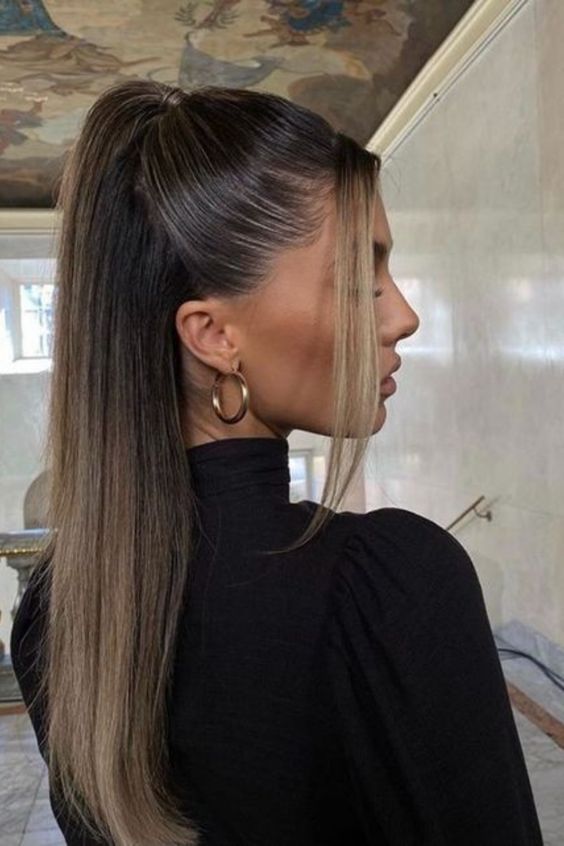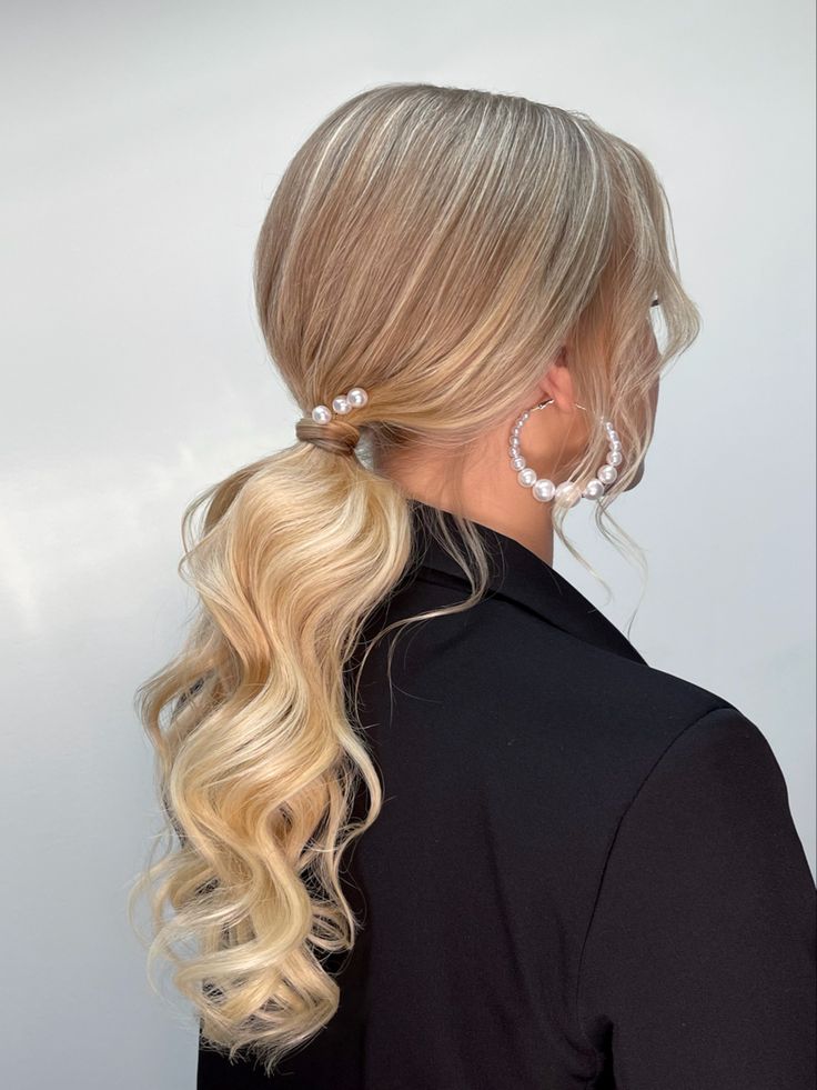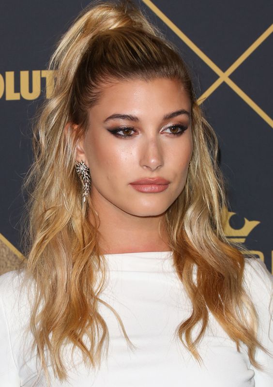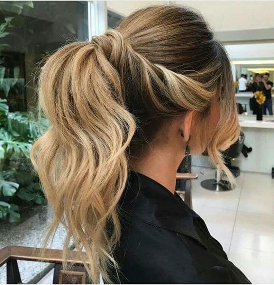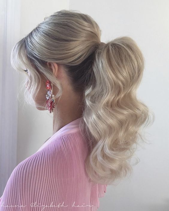 Tal cual vemos en las siguientes imágenes, podrás considera peinar una coleta alta completamente relamida hacia atrás, sin que un pelito se salga del peinado, en la parte de la coleta como tal, puedes hacer ondas en el cabello que queda ahà o bien dejarlo completamente lacio según tu estilo y gusto.
