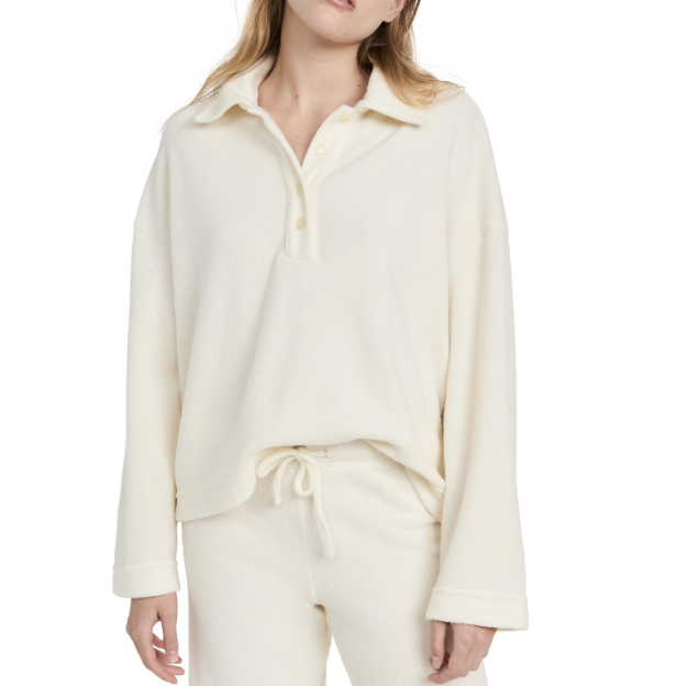 This collared sweater is created from the softest terry supplies and could be a perfect relaxed outfit paired with the matching terry pants.