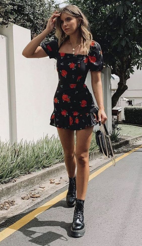 Vamos a comenzar con todas estas ideas de outfits con botas militares para sentirte cómoda que encontramos para compartirte. Aquà como podrás ver, nos iremos por una de las combinaciones más fáciles y prácticas de conseguir, nos referimos a la combinación de vestidos con botas militares. Y es que aunque no lo creas, hay muchos estilos de vestidos que se ven increÃbles combinados con este tipo de botas.