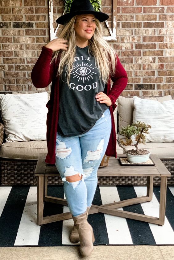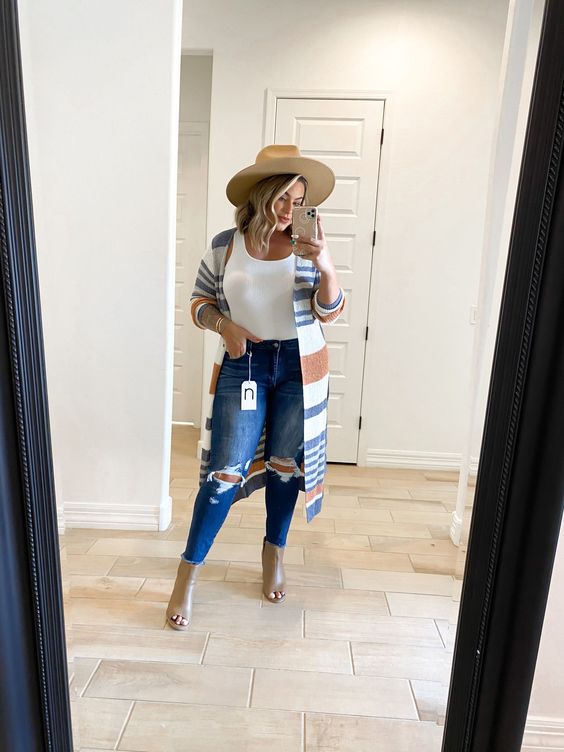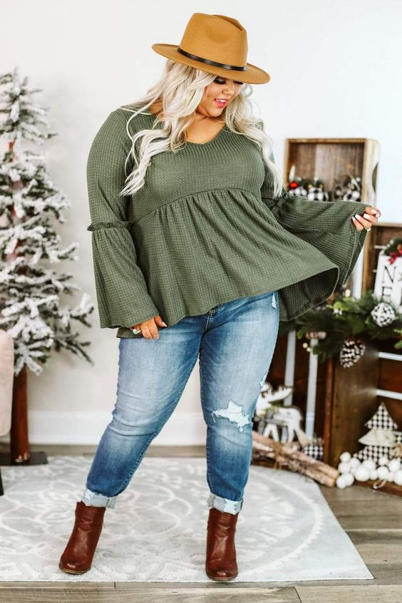 El primer punto que vamos a tocar en este tema de aprende a llevar sombrero si eres una chica gordita, será mostrarte diferentes appears casuales plus measurement con pantalón de mezclilla y sombrero que podrás armar en tu dÃa a dÃa. Ya sea para la temporada de primavera – verano o incluso para vestir en otoño – invierno, está es una combinación que podremos conseguir fácilmente. Dependiendo del tipo de prendas que usemos para complementar el look.