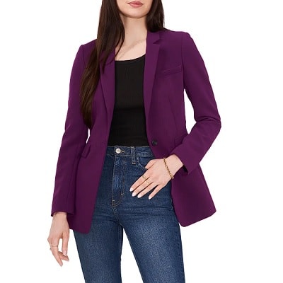 This “plum purple” blazer from 1.State will look stunning with charcoal, navy, and black gadgets as we get into the autumn and winter. If I’ve been desirous to placed on it now, I’d try it with a white or ivory prime and lightweight gray trousers.