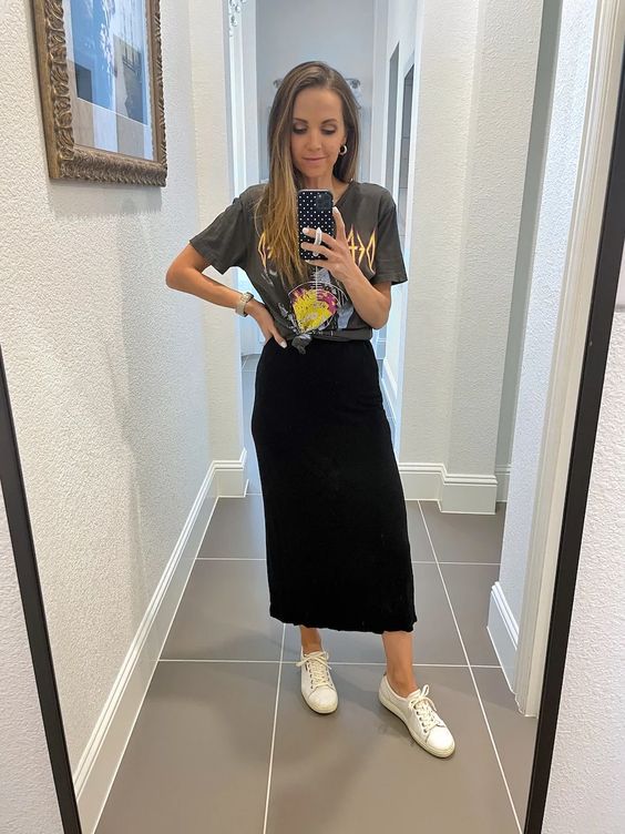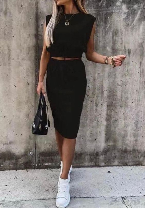 Uno de los principales colores en los que nos toparemos a este modelo de falda, es el color negro, ya sea en falda maxi o bien en una falda midi con abertura en piernas. Como podrás ver se ven increÃbles combinadas con camisetas básicas, también en colores neutrales. Asà como en el calzado, los tenis básicos de color blanco serán el mejor complemento.
