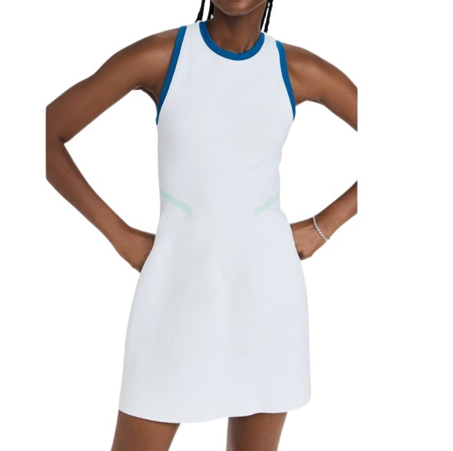 Distinction colored trim and a extreme neck silhouette change this conventional athletic costume, good for every tennis and golf.