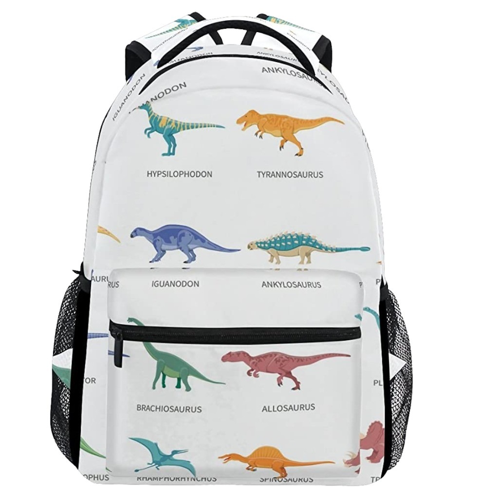 Dinosaurs and their scientific names roam this pretty backpack which will delight your littles and keep all of their schoolwork organized.