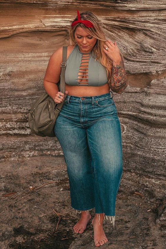 El primero de los outfits para ir a la playa si eres una chica rellenita que nos gustarÃa compartirte en esta ocasión se tratan de estos seems to be like plus dimension con jeans para la playa. Ya que los jeans de mezclilla son considerados prácticamente una pieza clave e indispensable en el guardarropa de cualquier mujer, incluso de mujeres que son talla grande, no deberán faltar un buen par de jeans de mezclilla. Sobre todo si vamos a ir de vacaciones a la playa te invito a que mires cuales son los mejores modelos, pero sobre todo como combinarlos.